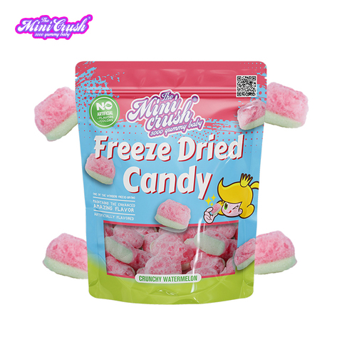 Venta al por mayor de gomitas de sandía liofilizadas, colores naturales, dulces agrios, certificado ISO y HACCP, suministro a granel, dulces envasados